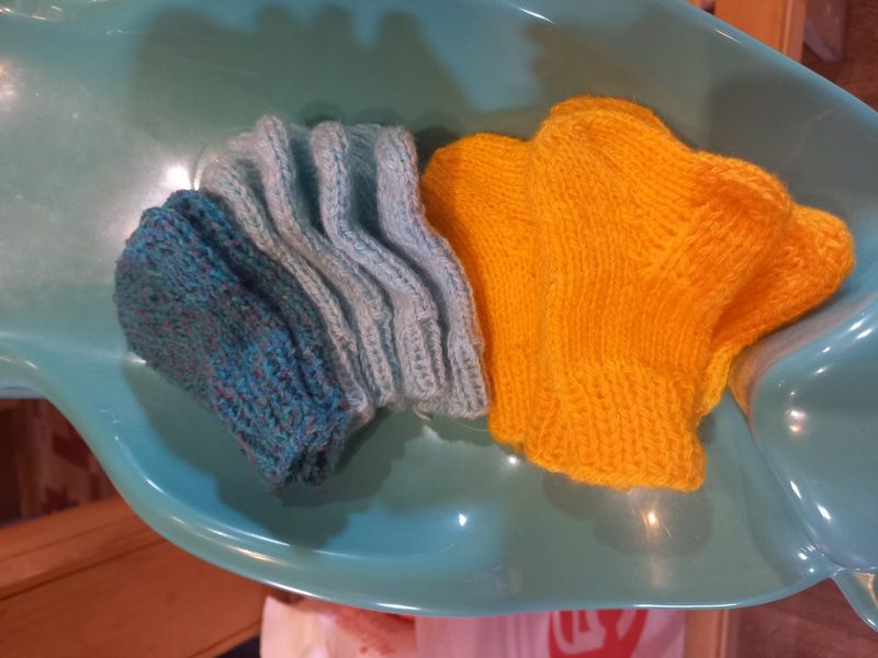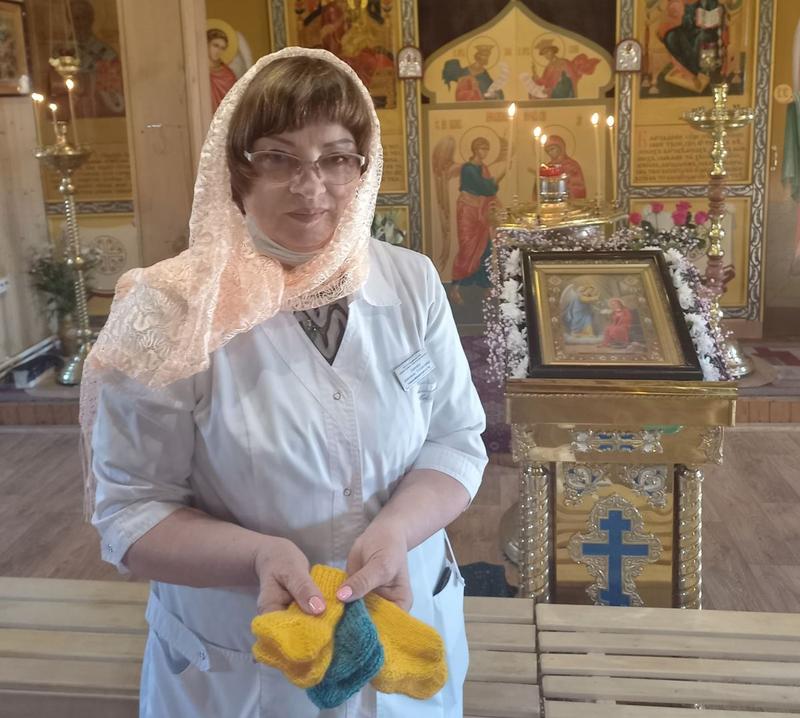 храма Надежда Гордеева связала носочки для малышей. Для детей стараются