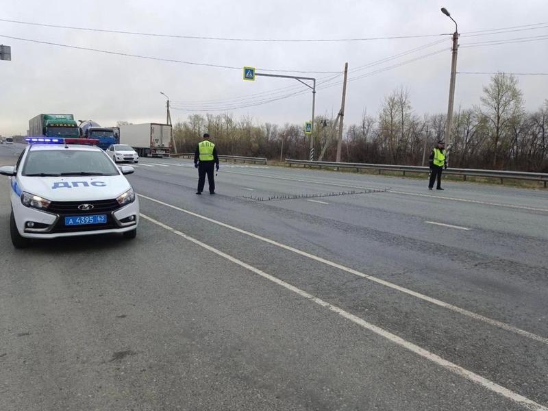 В Сызрани на дороге полицейские расстелили ленты с шипами