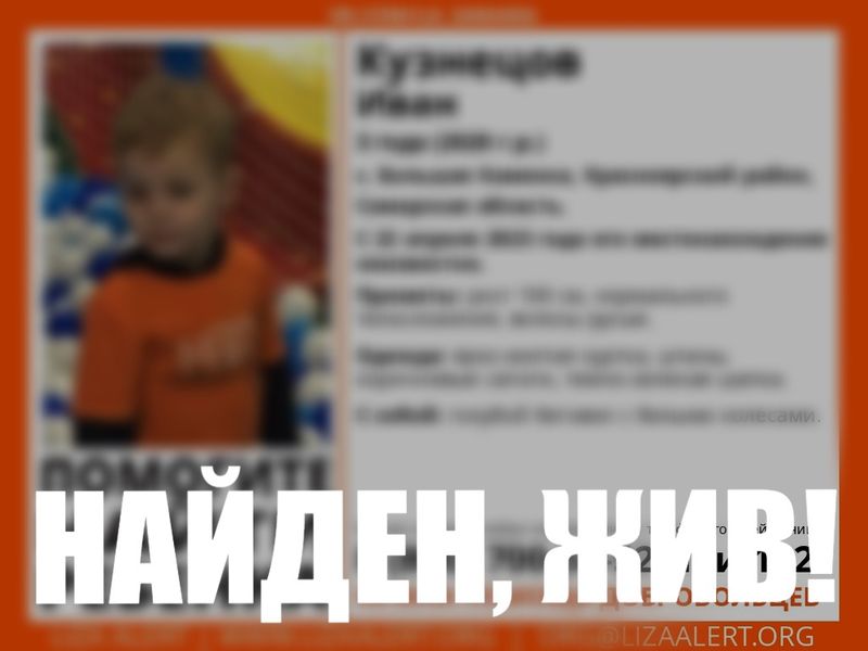 От сообщества добровольческого отряда «Лиза Алерт» поступило сообщение, которого во всей Самарской области ждали всю ночь: пропавший трехлетний Иван найден, он жив! О том, что мальчик пропал, стало известно накануне вечером. Было объявлено, что ребенок ушел из дома с самокатом в селе Большая Каменка Красноярского района и пропал. На призыв добровольцев приобщиться к поиску малыша волонтеры откликнулись со всей области. Как писали поисковики в чате, их было много, искали всю ночь, но нашли ребенка только под утро. Главное, что он жив.