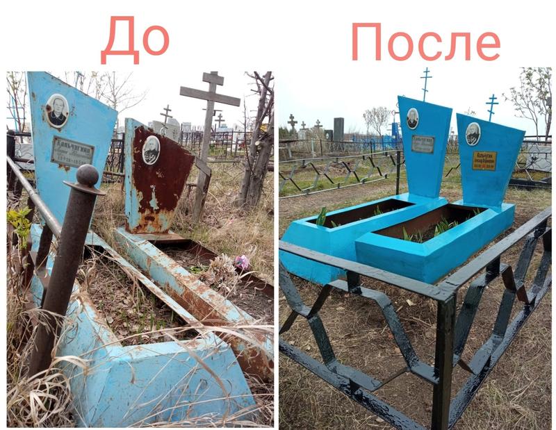 только покрасили покрытые ранее ржавчиной памятники, но и вырезали самосевные кустарники и поросль, убрали сухую траву и мусор,