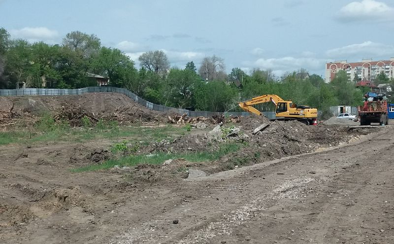 Территорию в границах улиц Карла Маркса, Соловьева и Бабушкина, известную в Сызрани, как Лягушачий парк, уже не узнать - густая дикая поросль выкорчевана и большинство древесины уже вывезена. На участке работает около десяти единиц тяжелой техники, завезены некоторые стройматериалы, рабочие продолжают возводить вокруг территории забор. Площадку вовсю готовят под закладку фундамента, но на территории скопилось довольно много воды - сперва придется создать дренажную систему. Она в любом случае необходима, учитывая специфику местности.