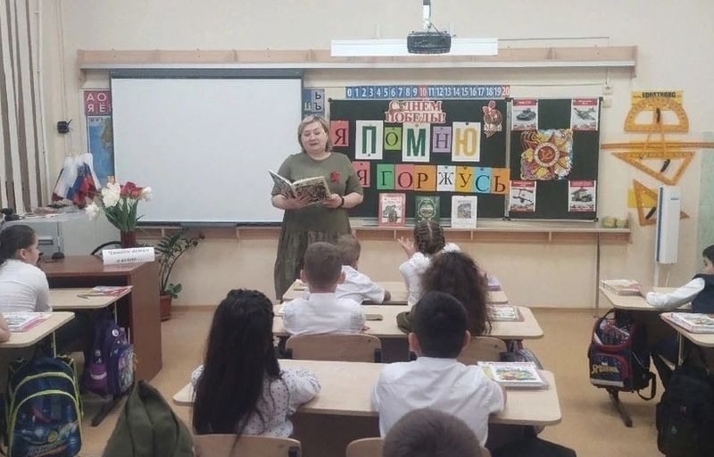 Читали о войне и в других школьных и дошкольных учреждениях. Так, ученикам 1 «В» класса школы №14 рассказ Анатолия Митяева «Мешок овсянки» прочитала директор школы Елена Марусина. А в 4 «А» классе школы №33 директор учреждения Владимир Мавринский прочитал ученикам рассказ Юрия Яковлева «Память».