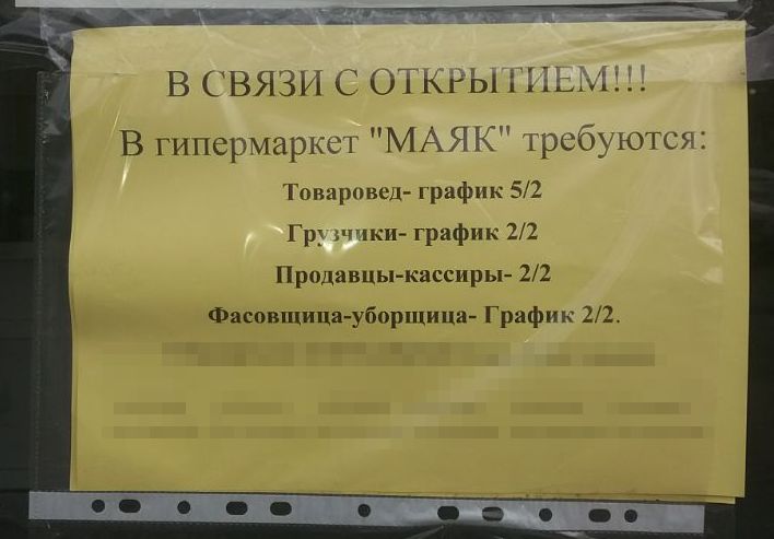 Через три недели, 15 июня, в торговом центре «Автобус» в Сызрани откроется гипермаркет низких цен «Маяк» - набор персонала уже идет. Многомесячные обсуждения и сомнения по поводу того, кто займет освободившиеся после ухода «Карусели» торговые площади, закончились. О том, что это будет именно «Маяк», заговорили еще зимой, но все было на уровне слухов. Но несколько дней назад на входе в ТЦ «Автобус» появилось объявление о наборе персонала. Как рассказали корреспонденту портала «маленькая Сызрань» желающие устроиться на работу в «Маяк», открытие запланировано на 15 июня, но работу персонал начинает уже 1 июня.