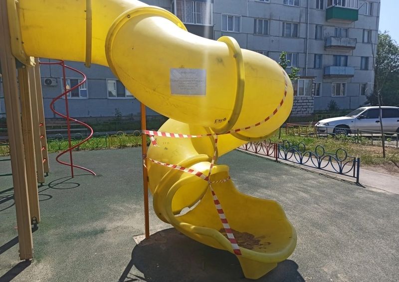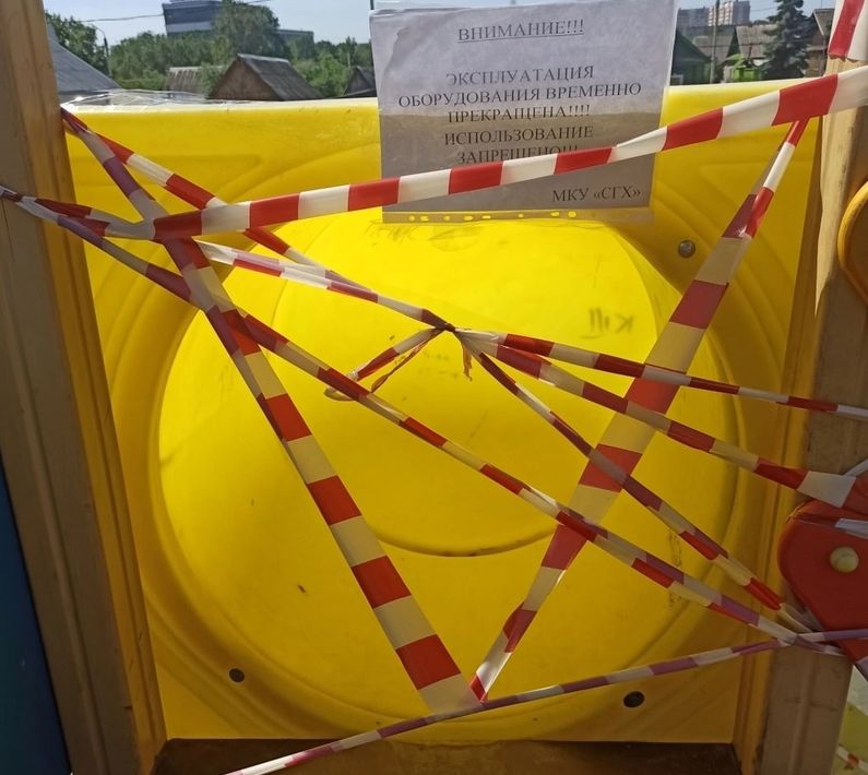 Что до изувеченных МАФов, то подвесы качелей были демонтированы в связи с их неисправностью в результате вандальных действий. Эксплуатация качелей приостановлена до определения решения суда. Также ограничен доступ на горку-трубу винтовую и уличные тренажеры.