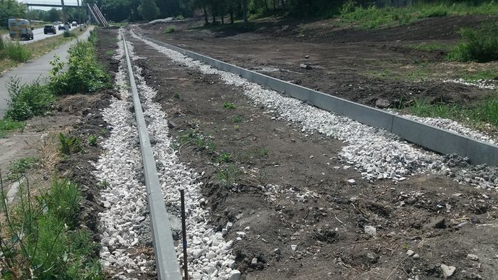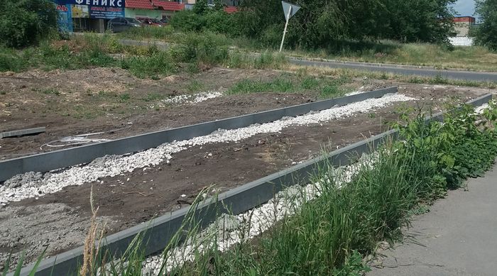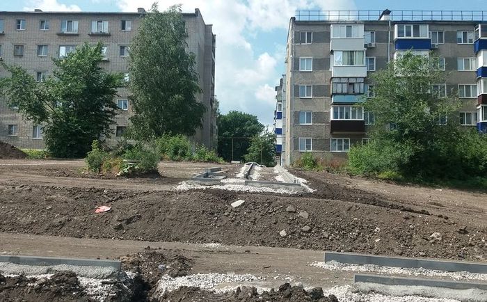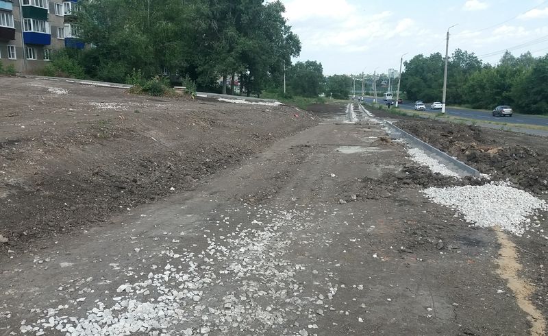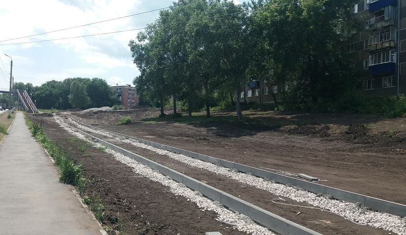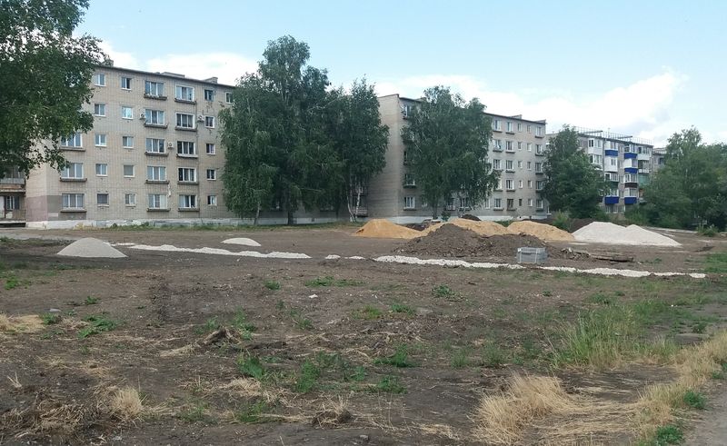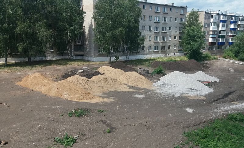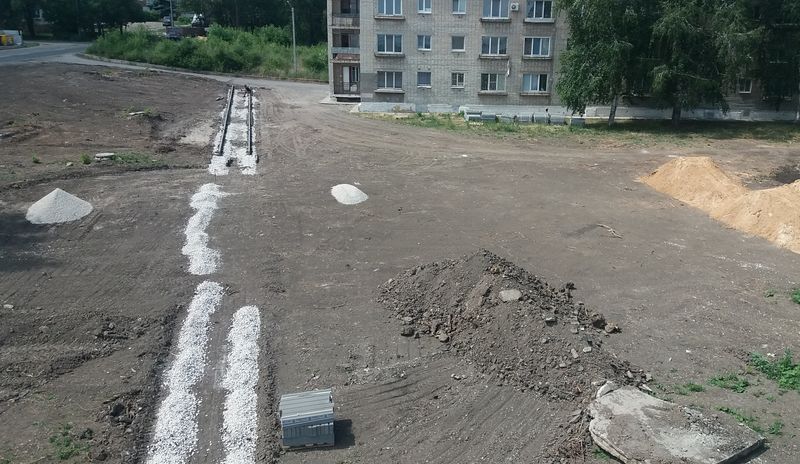 На место благоустройства уже завезены строительные материалы. Территория уже приобретает некоторые очертания - обозначены пешеходные дорожки, и на большинстве из них даже установлен бордюрный камень. Осталась небольшая группа деревьев, которая будет создавать желанную в жару тень и станет частью озеленения территории.