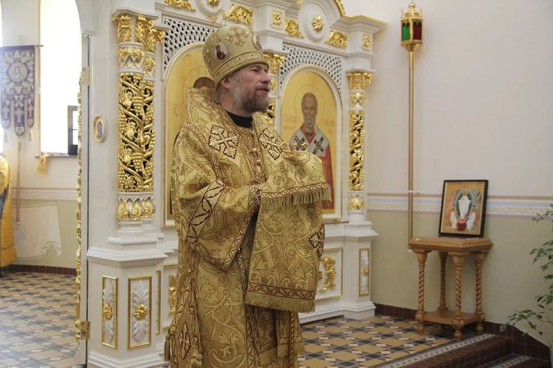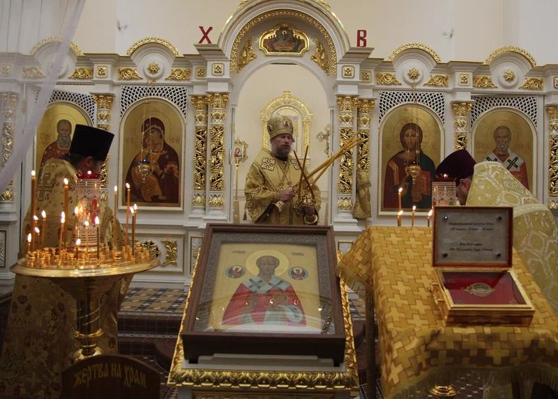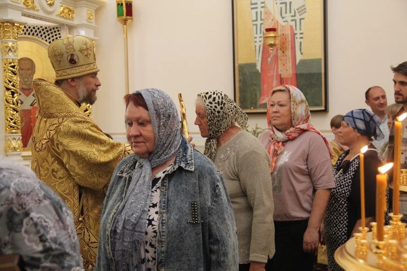 После встречи мощей состоялось богослужение. Владыке Леонтию сослужило