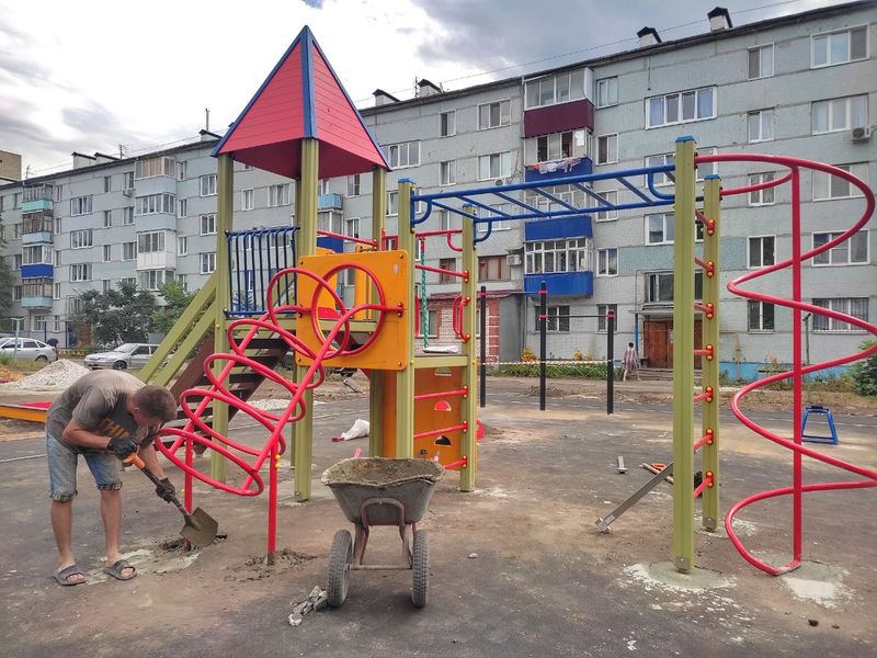 Теперь же он приобретает совершенно иной вид. Подрядной организацией выполнено устройство основания детской площадки и пешеходных дорожек. В настоящее время производится установка новых МАФов, в число которых входят: детский игровой комплекс, лабиринт, теннисный стол, турник, качели, карусель, качалка-балансир, песочница, лавочки.