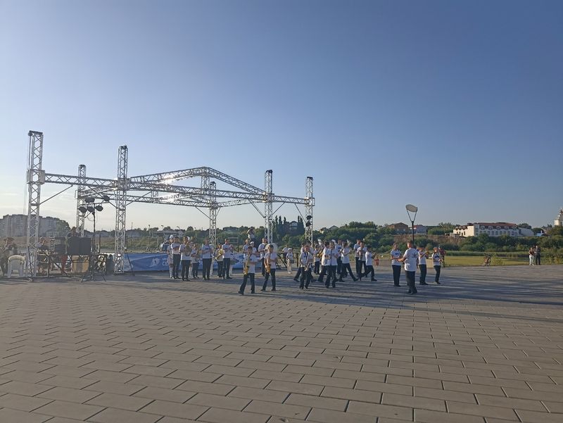 На Кремлевской набережной Сызрани сегодня было еще более шумно, чем в обычные погожие дни. Кроме радостного гула отдыхающей ребятни и криков поддержки со спортивных площадок, можно было услышать грохот металла - на набережной рабочие возводили огромную металлоконструкцию. Как вскоре оказалось, это была сцена, на которой уже сегодня выступят духовые коллективы - участники фестиваля «Серебряные трубы Поволжья». Сам фестиваль торжественно открыли несколько часов назад в драматическом театре.