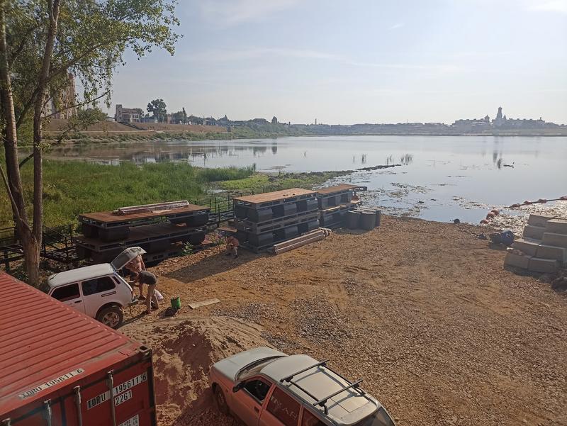 В пятницу, 18 августа, в разгар торжественного открытия фестиваля «Серебряные трубы Поволжья» и проведения арт-пикника на Кремлевской набережной, как сообщила администрация Сызрани в своем телеграм канале, на противоположном берегу Сызранки, на Монастырской набережной шла разгрузка прибывшей в наш город первой партии понтонов. Они будут установлены на воде в рамках второй очереди благоустройства Монастырской набережной. Как прокомментировал процесс главный специалист МКУ «СызраньСтройЗаказчик» Роман Мурзов, понтоны были собраны на заводе-изготовителе блоками. Следующим этапом их монтажа станет спуск на воду, установка на якоря и сборка между собой. Как отметил специалист, уже сегодня, 19 августа, подрядчик планирует приступить к сборке понтонов именно на воде.