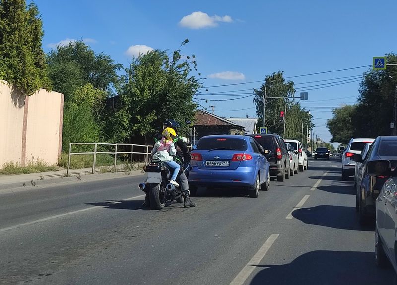 Необычное зрелище порадовало сегодня автомобилистов города, один из которых поделился впечатлениями с корреспондентом портала «маленькая Сызрань». «Такое зрелище вижу впервые. Умилило до глубины души. И другие водители тоже были в восторге - сигналили маленькой героине дня, махали ей рукой, улыбались. Малышка тоже улыбалась и махала нам рукой в ответ», - рассказал автомобилист. А восхитил мужчину вид маленькой девочки, лет 6-7, которая отважно сидела на мотоцикле позади своего «правильного» отца, как его назвал автор фото. Он объяснил, почему «правильного».
