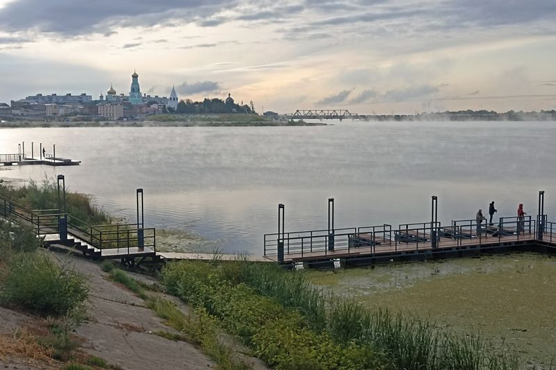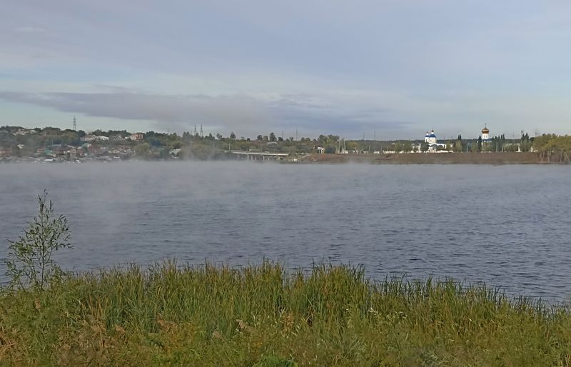 Сегодня утром горожане наблюдали, как «кипит» Сызранка. Как правило, это происходит как раз осенью после того, как на смену теплым летним температурам приходит холодная осенняя. Это явление носит множество названий, в том числе паровой туман, туман испарения, морозный дым и морской дым. У нас же его называют проще - вода «закипела». Эффект действительно впечатляющий. Так как утром в Сызрани было всего около 3 градусов тепла, то не мудрено, что над водой поднялся морозный дым. Впрочем, Сызранке с Волгой не сравниться, когда та начинает «закипать» перед сильными морозами. Нередко это происходит очень глубокой осенью - в начале и даже середине ноября. «Кипит» Волга день, от силы два по утрам. Но и нынешнее «кипение» Сызранки пришлось горожанам по душе.