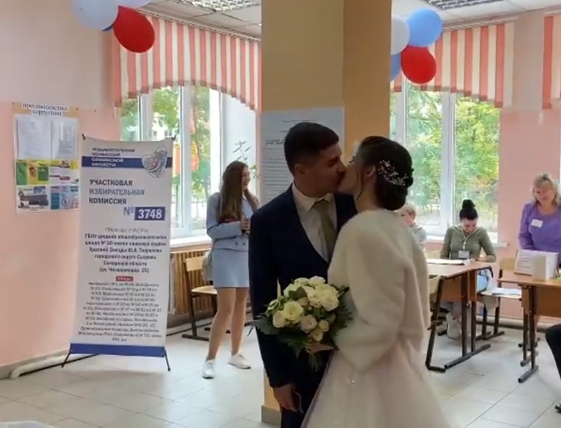 Нынешние выборы губернатора и депутатов в местную думу в Сызрани уже отметились знаковыми случаями. Так, в первый день голосования на избирательный участок в сопровождении десятерых сыновей и дочерей пришли супруги Захарьяш, а сегодня исполнить свой гражданский долг приехали молодожены Максим и Мария Волковы. Как отмечает в своем телеграм-канале глава Сызрани Анатолий Лукиенко, который стал свидетелем прибытия жениха и невесты на участок, новобрачные в своих традиционных свадебных нарядах отправились не в ресторан, а на избирательный участок, чтобы принять участие в голосовании. Молодожены уверены, что таким поступком они влияют на будущее своего города, области и, конечно, своей семьи.
