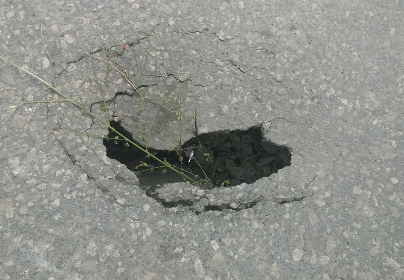 На проезжей части дороги, которая ведет от торгового центра Автобус к новостройкам, расположенным вдоль улицы Интернациональной, еще весной местные жители заметили намечающийся провал. По всей видимости, под дорогой проходит коммуникационная магистраль, так как под асфальтом довольно объемное полое пространство. «Уже и веточки туда сажали, и депутату жаловались еще перед выборами, и мэра там с ним видели, но так ничего и не произошло - провал как зиял, так и зияет», - рассказала корреспонденту портала «маленькая Сызрань» местная жительница.