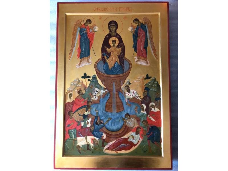 Икона «Живоносный источник», на изготовление которой жертвовали деньги горожане, готова. Напомним, в Христорождественском храме Сызрани, расположенном на территории мемориального комплекса неподалеку от кремля, решили восстановить историческую справедливость. Старинный храм, памятник архитектуры федерального значения, был построен в первой половине XVIII века на месте деревянной церкви во имя Пречистой Богородицы «Живоносный источник». Одноименная икона была святыней старинного храма, она досталась ему «по наследству» от первой, деревянной церкви. Но в 20-е годы XX века, когда храм был закрыт, часть церковного убранства была разворована - и старинная икона пропала. Прошли годы, сейчас храм снова действует - и в сызранской епархии решили изготовить новую икону.