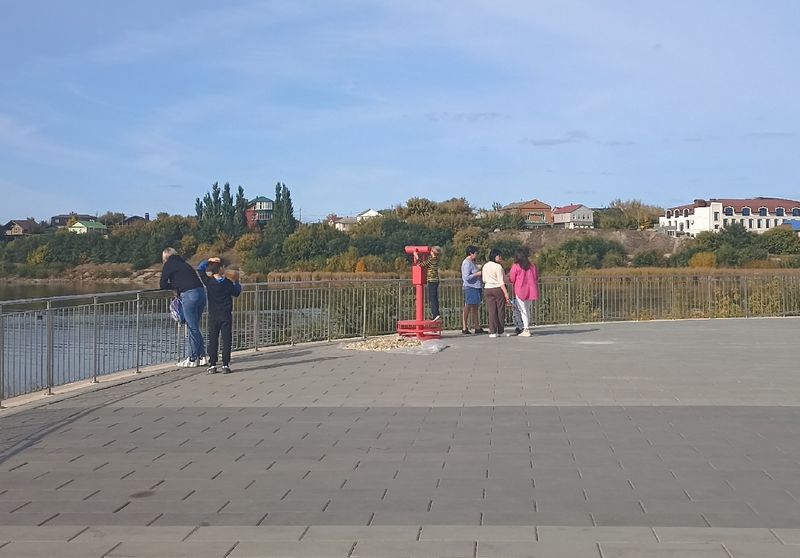 На Кремлевской набережной Сызрани несколько дней назад появились огромные бинокли. В рамках туристического кода, который как раз в настоящее время активно внедряется в городе, в разных точках набережной установили сразу четыре оптических прибора. Смотровой бинокль относится к объектам событийной инфраструктуры. С его помощью туристы и жители города смогут изучить окрестности, полюбоваться живописной панорамой и даже понаблюдать за звездами. Как видно по фотографиям корреспондента портала «маленькая Сызрань», понаблюдавшего за посетителями набережной, бинокли пришлись горожанам по вкусу, и к ним залипают отдыхающие разного возраста - и дети, и представители зрелого поколения.