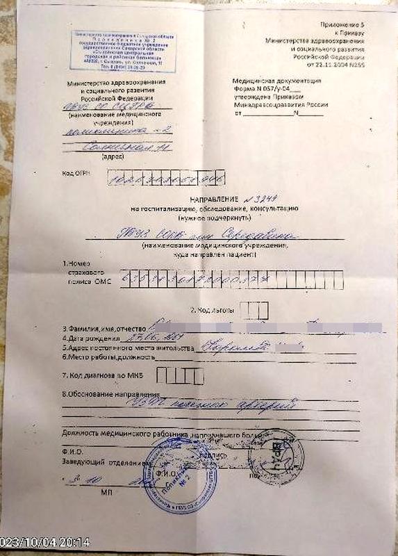 Сызранка прошла уже довольно серьезное обследование, в том числе и почек; побывала у врачей, те отмели первоначальные диагнозы. На днях женщина была на приеме у кардиолога. Врач отнеслась к пациентке внимательно, изучила результаты ее обследований и высказала свои предположения, подтвердить которые могла бы компьютерная томограмма надпочечников и ряд анализов, которые предстоит сдать сызранке. Врач порекомендовала пациентке прийти на следующий день в поликлинику за направлением в областную больницу имени Середавина на КТ надпочечников. Женщина забрала направление - и только дома обнаружила, что ее в очередной раз посылают "не туда".