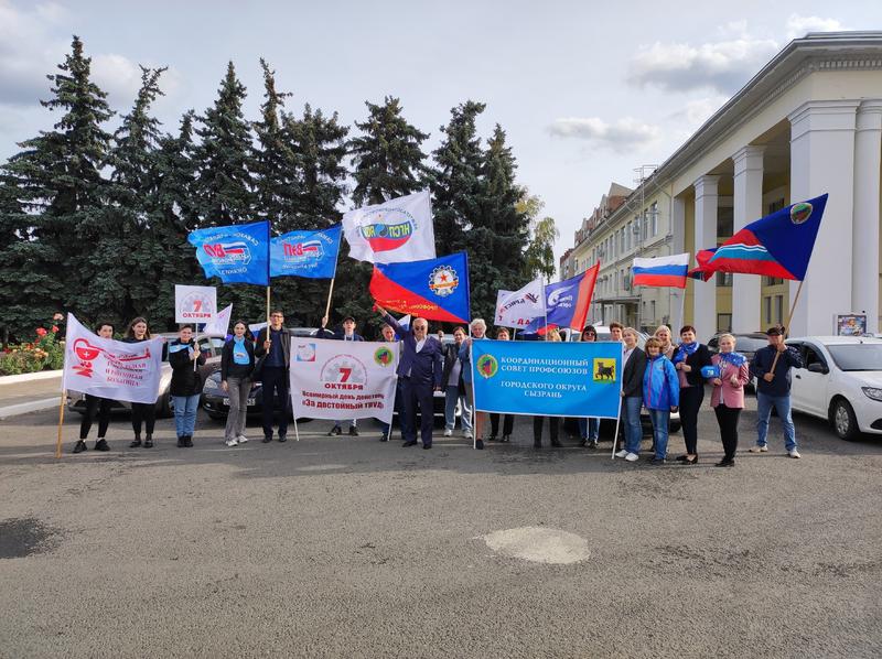 Сегодня, 7 октября, в Сызрани прошел автопробег. Его организовал координационный совет профсоюзов Сызрани. Как рассказал корреспонденту портала «маленькая Сызрань» участник автопробега Петр Лобарев, в автопробеге приняли участие все крупные первички Сызрани: «Тяжмаш», «СНПЗ», профсоюзная организация здравоохранения, Западного управления областного Минобра, «Криста» и другие, каждый участник - со своим отраслевым флагом. Автопробег был посвящен Всемирному дню действий «За достойный труд», который с 2007 года призывает граждан высказать свое единство с профсоюзным движением. По словам Петра Лобарева, автопробег прошел успешно и вызвал интерес к нему горожан.