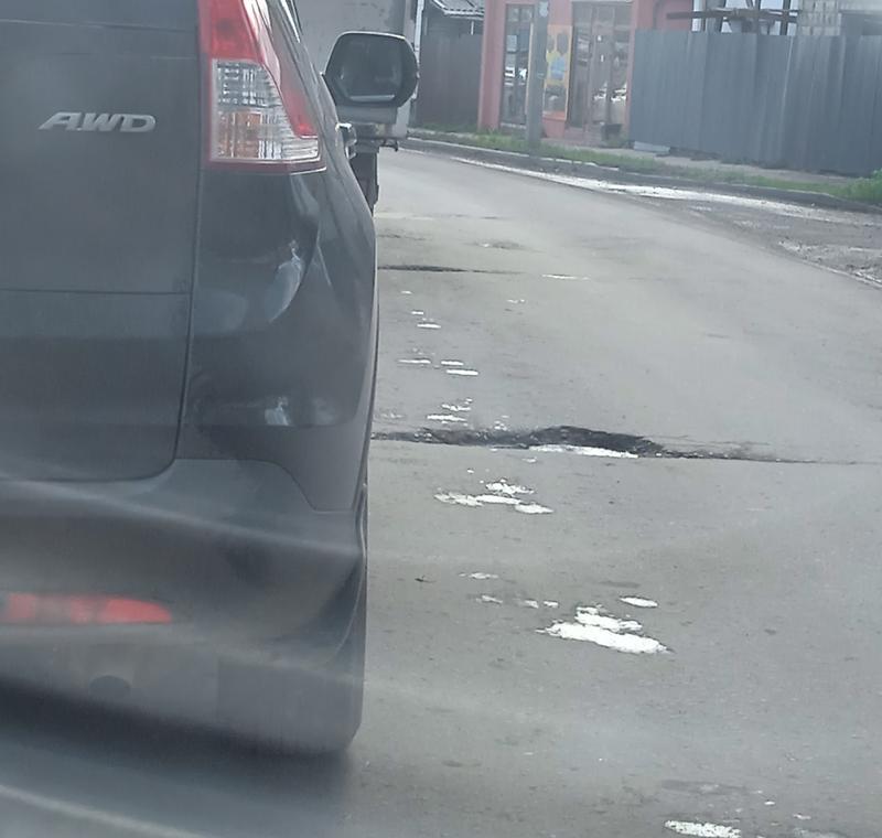 удержится долго заплата. А где-то, как напротив АЗС около ресторана «Ташир», две глубокие ямки и вовсе не были замечены. Просто не дорожное, а