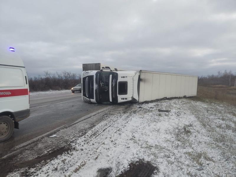 Сегодня утром экстренные службы Сызрани и Сызранского района прибыли по тревожному сигналу на трассу М-5. Там в ДТП попал большегруз - предположительно, Volvo. Занесло ли фуру, или причиной стало столкновение - но известно, что большегруз завалился набок на скользкой дороге. По предварительным данным, водитель не пострадал. Среди прочих служб, на место аварии прибыли пожарные-спасатели ПСО 37. Они осуществляли аварийно-спасательные работы, в т.ч. смыв ГСМ с дороги. Сотрудники полиции вели сбор информации об обстоятельствах дорожного происшествия, приведшего к тому, что фура «разлеглась» на дороге под Сызранью.