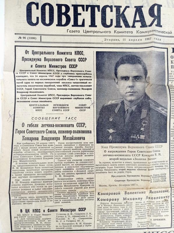 трагедией: парашют, с которым аппарат с космонавтом должен был приземлиться, не раскрылся.