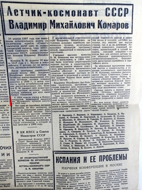 начинал осваиваться: всего шесть лет прошло со старта Гагарина. Комаров