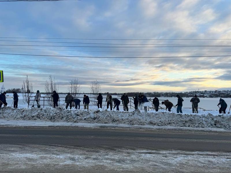 Сегодня, 23 ноября, на расчистку дороги вдоль Монастырской набережной вышли руководители города: глава Сызрани Анатолий Лукиенко, председатель думы Сергей Митко и сотрудники администрации. Набережная нуждалась в срочной очистке от снега - это оживленное пешеходное место, а выглядела она после снегопада «из рук вон»: ступени лестниц завалены снегом - кроме той, на которой успел потрудиться дворник, тропинка - вся в комьях снега. Бригада чиновников вышла на борьбу со снежными завалами в 13 часов. «Такой вот «субботник» получился в четверг», - прокомментировали фото в соцсетях.