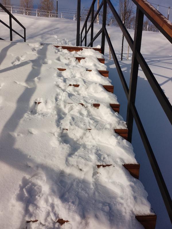 На первом фото: так выглядели почти все лестницы на набережной сегодня утром.