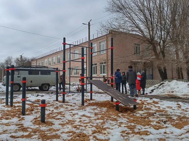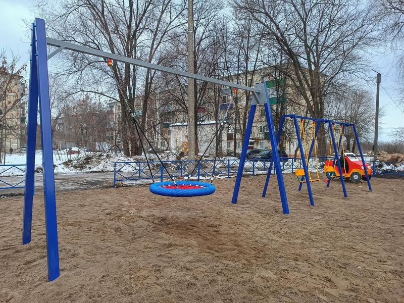 прочие элементы. На спортивной площадке установлен комплекс с семью