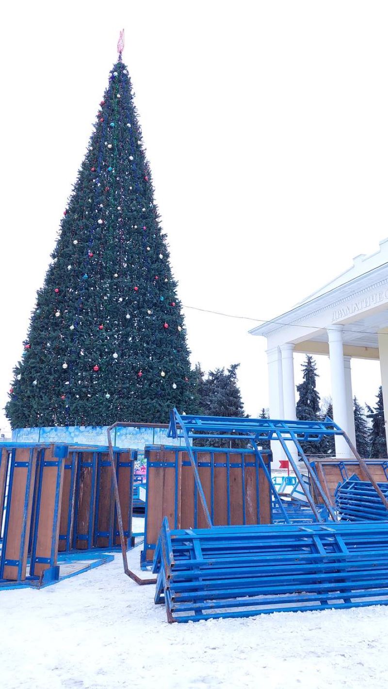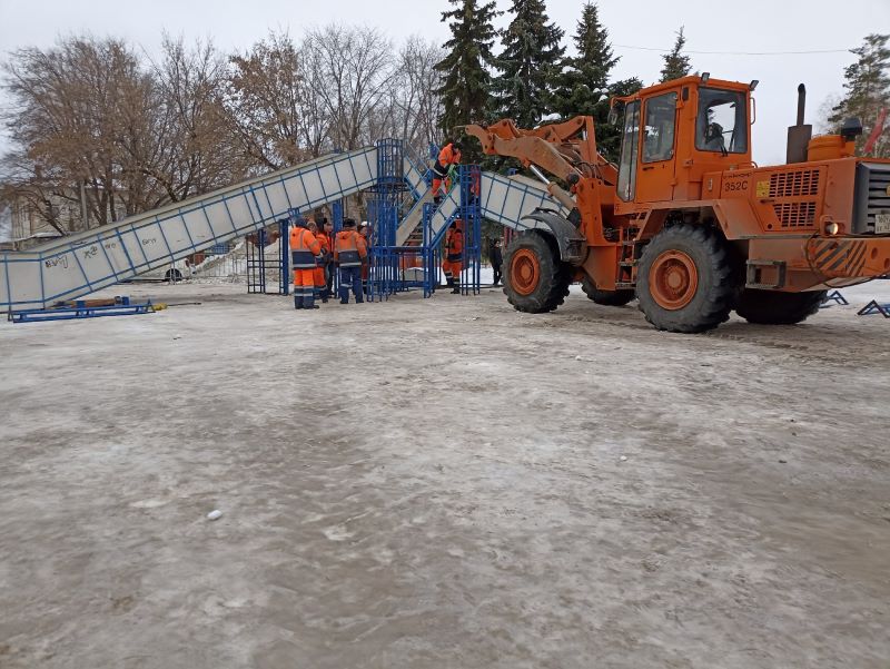 На площади Ленина начали собирать игровой комплекс зимних горок «Мономах»