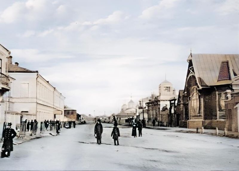Музей модерна опубликовал снимки дома купца Степана Кузьмича Чернухина, который стоял на улице Большой (ул.Советской) прямо напротив реального училища. Если бы дом сохранился до наших дней, то он стоял бы напротив реального училища, но в 1970-х власти задумали разбить в центре города площадь им. Ленина. и без сожаления снесли этот уникальный особняк в стиле модерн, украшенный перламутровой фасадной плиткой и резными деревянными воротами. Мы раскрасили фотографию с помощью нейросети, чтобы наши читатели смогли представить дом.