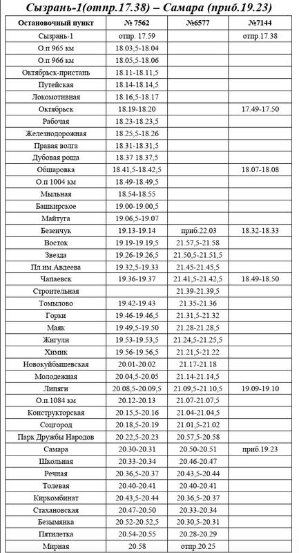 Через неделю, с 1 февраля, изменится расписание вечерней сызранской электрички. Привычное время отправления и прибытия сдвинется почти на час. Так, поезд «Сызрань-1 - Мирная» сейчас отходит от платформы в нашем городе в 18:48, а на Мирную прибывает в 21:46. А с 1 февраля электричка будет отходить от Сызрань-1 в 17:59, а прибывать на Мирную в 20:58. Изменится с 1 февраля также расписание электрички Мирная - Безенчук. А с 4 февраля произойдут следующие изменения: электропоезд сообщением Сызрань-1 (отпр.18:05) – Самара (приб.19:50) по воскресеньям проследует по измененному расписанию - Сызрань-1(отправление в 17:38) – Самара (прибытие в 19:23).