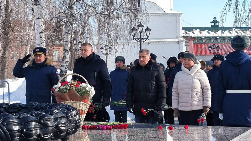 Сегодня, в день защитника Отечества, в городе проходят торжественные, праздничные мероприятия. Одно из них состоялось на мемориале Вечный огонь. У мемориального комплекса собрались военнослужащие и участники боевых действий, курсанты вертолетного училища, ветераны, представители общественных организаций и патриотических клубов, администрации и думы Сызрани. Собравшиеся возложили цветы к Вечному огню в память о воинах, отдавших свои жизни за свободу и независимость страны, и почтили минутой молчания память погибших воинов. А в эти минуты в Драматическом театре им. А.Н.Толстого проходит торжественное собрание, посвященное Дню защитника Отечества. В зале - гордость Сызрани: ветераны, офицеры, курсанты вертолётного училища. Праздничная атмосфера создается силами творческих коллективов города.