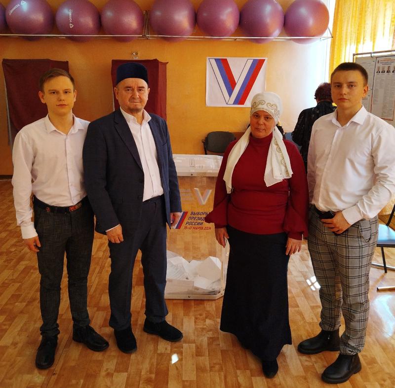 Характерная особенность выборов в марте-2024: приподнятое настроение людей, их участие в этом важном деле семьями. Среди избирателей - немало узнаваемых лиц, уважаемых в городе людей. Так, сегодня на избирательный участок вместе с семьей пришел старший имам Сызранской соборной мечети Илгизар Сагдеев. Как рассказал корреспонденту портала «маленькая Сызрань» Илгизар Ягфарович, семья специально выбрала день 16 марта для голосования - сегодня старшему сыну духовного главы мусульман Мухаммеду исполнилось 20 лет. «Думаю, день его 20-летия надолго запомнится сыну», - отметил отец. Илгизар Сагдеев рассказал, почему так важен для его семьи сам факт выборов кандидата в президенты страны.