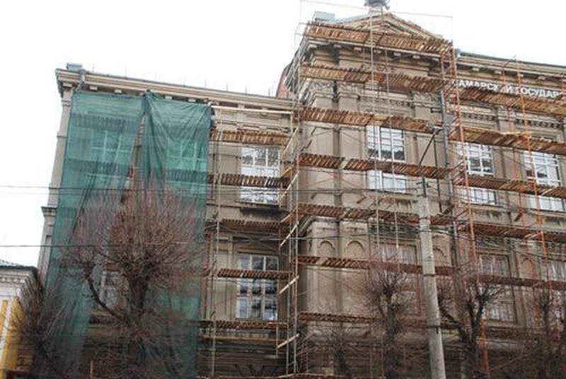 Отметим, однако, что лента ограждения не решает проблемы безопасности людей: в зоне опасности - пешеходная зона, и упавший или брошенный рабочими с крыши камень запросто может «прилететь» в кого-то из прохожих. Фасадная сетка, наподобие той, что в свое время (при ремонте в 2019-2020 гг) ограждала от падений кирпичей фасад здания Сф СамГТУ на улице Советской, или той, что на фото внизу, была бы более уместна.