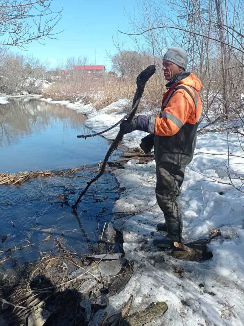 До паводка остались считанные дни. В час, когда вода польется в жилые массивы, коммунальные и спасательные службы будут начеку. Но и сейчас, когда паводок еще не пришел, службы работают на износ. Рядовые сотрудники МКУ «Благоустройство» лезут в ледяную воду, рискуя своим здоровьем, чтобы хоть как-то смягчить последствия паводка. Одним из видов превентивных мероприятий является очистка от веток деревьев и прочего мусора русла реки Крымза. Таким образом убираются преграды для естественного хода воды в нужном направлении. На фото – работа сотрудников МКУ «Благоустройство» по ул. Клубной (в районе завода «ТЯЖМАШ»). Обыкновенные будни тяжелой работы. По данному адресу работали в первой половине дня. Теперь – на ул. 2-ой Межевой в районе дома №1.