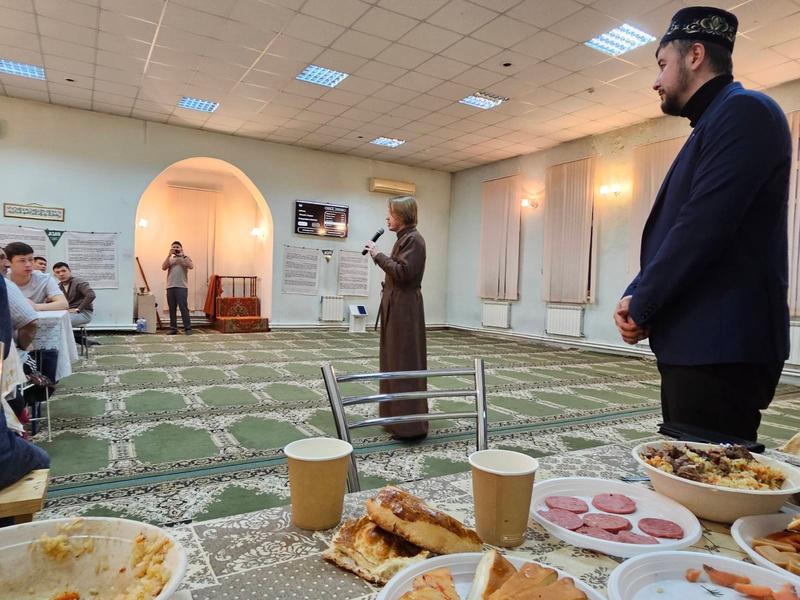 Священник Сызранской епархии протоиерей Александр Устинов стал гостем «Шатра Рамадана» в мечети «Азан» на Образцовской площадке. Пост мусульман в священный месяц Рамадан частично совпал, по датам, с православным Великим постом. Во время строгого поста, который в 2024 году пришелся на 11 марта - 9 апреля, мусульмане отказываются от пищи и воды до захода солнца. Шесть лет назад во дворе мечети Азан был поставлен шатер Рамадан; два года назад отслуживший свое шатер демонтировали, но место встречи мусульман внутри мечети, место разговения и бесед духовного плана стали называть «Шатер Рамадан». На встречи с единоверцами мулла мечети имам Фарид хазрат приглашает уважаемых в нашем городе людей: 28 марта гостем шатра стал православный священник и ребята из сызранского клуба православной молодежи «Ника» - к слову, до этого подростки не были в мусульманской мечети.
