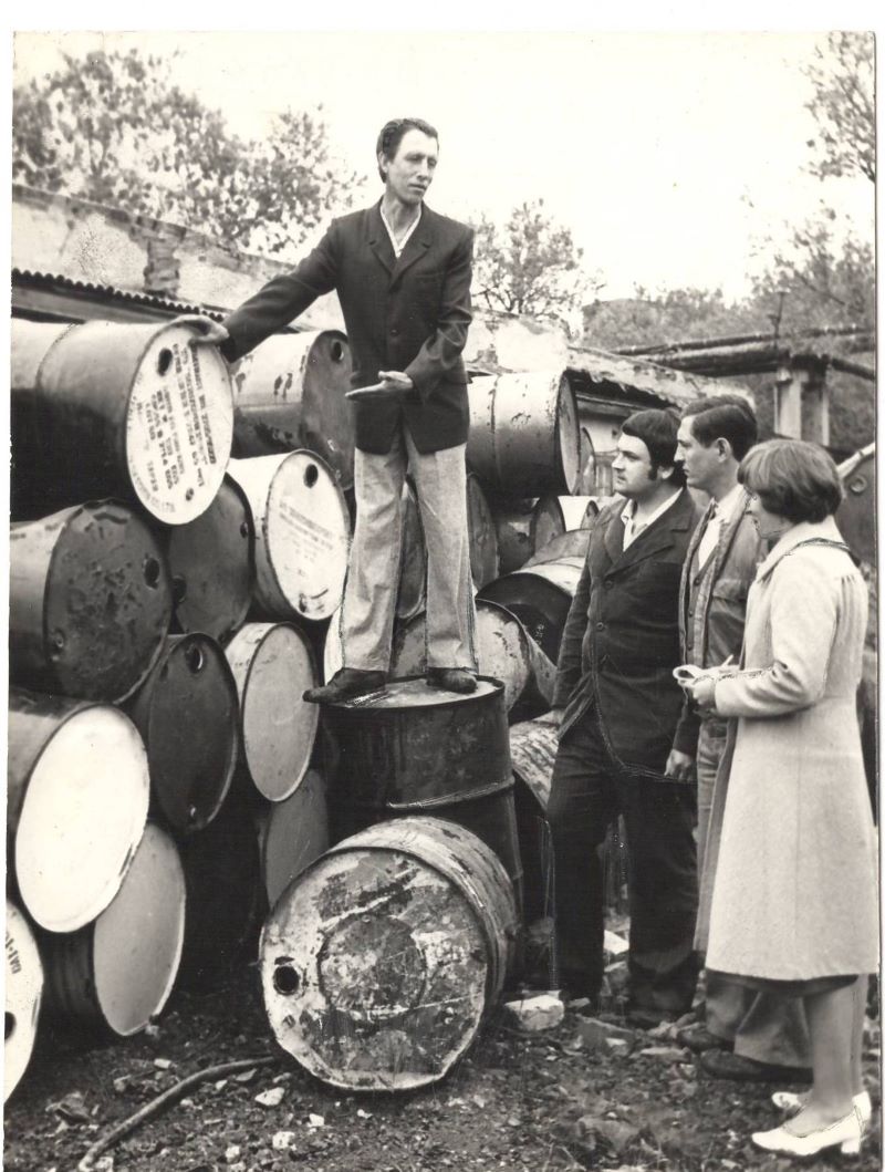 Народные контролеры Сызранского сланцеперерабатывающего завода Г.И.Кривых, А.Ф.Зобков, В.А.Адеянов, Х.М.Додина проверяют хранение тары. 30 сентября 1980 г.