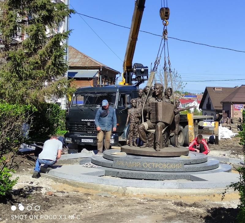 Произошло наконец событие, которого несколько лет ждала культурная общественность Сызрани: на улице Советской установлен памятник композитору Аркадию Островскому. Улыбающийся композитор, автор песен «Солнечный круг», «Спят усталые игрушки» и многих других, играет на аккордеоне в окружении детей. Миниатюрный макет памятника был представлен в администрации Сызрани еще в 2017 году. Проект разрабатывал академик Альберт Чанкин, автор памятника воеводе Козловскому, основателю Сызрани. Затем академик умер, и работу продолжил его ученик, Андрей Новиков. Внешний вид памятника изменился, но его также с нетерпением ждали в Сызрани.