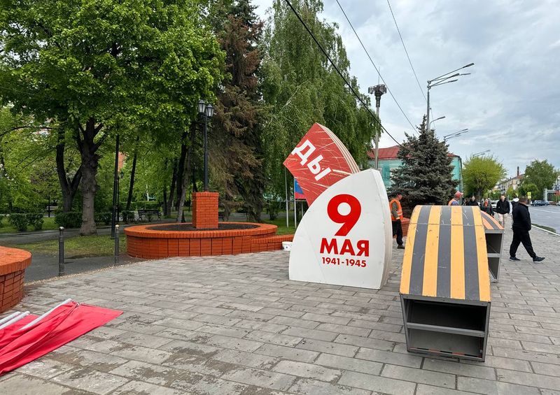 Сегодня в центре Сызрани ударно работают сотрудники коммунальных служб - ведутся приготовления к предстоящему великому Дню Победы. На торце здания администрации города появился огромных размеров баннер с символикой праздника, а у входа в Кузнецкий парк рабочие монтируют величественную арку. Этот арт-объект уже давно стал одним из любимых горожанами - на его фоне из года в год многие делают памятные снимки. Кроме появления элементов украшения к празднику, центр города облагораживают и изнутри - в Кузнецком парке бригада косарей приводит в порядок газон.