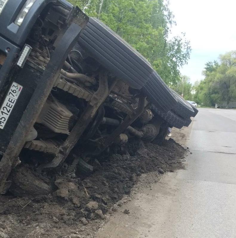 Неординарное ДТП произошло сегодня днем, около 14 часов, в Сызрани: на улице Жуковского опрокинулся на бок самосвал. Судя по сообщениям в сети, в ЧП на дороге была виновата вышедшая в лоб грузовику Приора: один из автомобилистов в популярной группе в вайбере советует водителю легковушки вернуться «по-хорошему» и сообщает, что водитель грузового авто был доставлен в больницу. Что стало причиной ДТП, предстоит выяснить ГИБДД. Самосвал лег на бок, рассыпав груз, неподалеку от железнодорожного переезда у завода «Нефтемаш». Отметим, что дороги в районах Образцовской площадки и РМЗ давно пользуются дурной славой у автомобилистов Сызрани: местами дорожное полотно довольно серьезно разрушено, а в местах, где образовались очень глубокие ямы, даже сегодня можно найти покрышки, которые служат маяками для участников дорожного движения.
