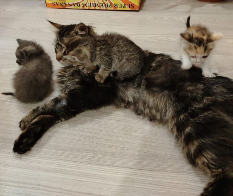 «Две из трех кошечки очень уж похожи на Симбу. Никак отцовские чувства проснулись – забрал детей у гулящей мамки!» - полушутя говорит Ольга. И тут же замечает: «Если и так – молодец, Симба, благородно поступил! А кошечек мы пристроим – хорошим людям подарим на счастье!»