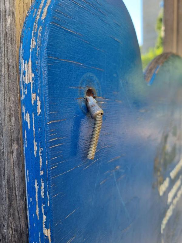 На фото - обломки досок с торчащими острыми щепами, выпирающие наружу саморезы, ободранная краска и расслаивающееся от времени дерево: это детская площадка на проспекте 50 лет Октября, 54. Дом был построен в 1988 году. Не исключено, что именно тогда, еще при СССР, и появилась во дворе детская площадка, и советским наследием пользовались больше 35 лет. Два поколения детей и годы измочалили детские МАФы до такой степени, что на площадке, как сообщила в сети одна из жительниц, стали происходить ЧП. «Вчера ребенок на горке зацепился кофтой и повис на саморезах, сам освободиться не мог, его снимали, - рассказывает женщина. - Девочка поранила ногу, другая порвала джинсы, зацепилась об штырь, посадили занозу. Ранее там у девочки застревала нога, мальчик ломал руку», - поделилась женщина.