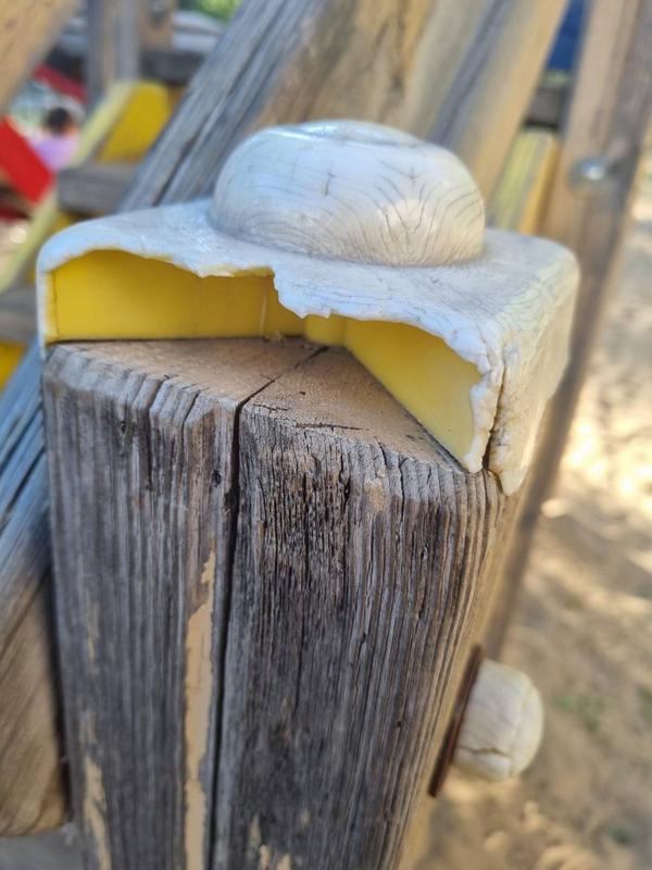 детской площадки. По мнению женщины, нужно заменить у горки деревянные