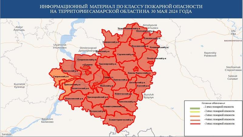 Погода в Самарской области снова приобрела оранжевый оттенок - в нашем регионе из-за жары объявлен высший, пятый класс пожарной опасности. Он устанавливается с 31 мая по 3 июня Со своей стороны, МЧС передает, что в 33 районах Самарской области сегодня действует 4 класс пожарной опасности - в списке Шигонский район. Напомним, 5 класс предполагает запрет не только въезда в лес на автомобилях или мотоциклах, но и просто нахождение граждан в лесу. Отметим, что любое нарушение правил пожарной безопасности в особый противопожарный период, который введен в Самарской области с 15 апреля по 15 октября 2024 года, по решению суда может быть наказуемо штрафом - а при 4-5 классе пожарной опасности сумма штрафа может быть увеличена вдвое. В МЧС напомнили: нельзя разводить открытый огонь в соответствии с особым противопожарным режимом, необходимо помнить о запрете на посещения лесов, категорически нельзя поджигать сухую траву на полях, полянах и т.д. и бросать окурки.