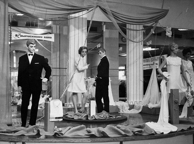 Это был целый мир - то, какие инсталляции представляли детскую одежду, школьную форму, модельки машин, кораблей и самолетов и, конечно, игрушки - современные детские магазины могли бы позавидовать.