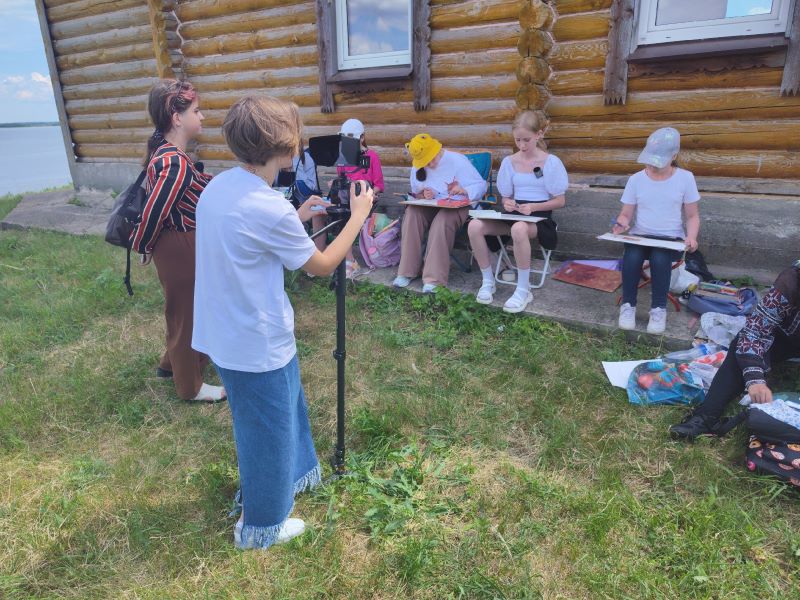 Интересной изюминкой пленэра стало внезапное интервью с учениками ДШИ. Несколько ребят под руководством иеромонаха Давида (Кургузова) в рамках своего выпускного проекта в юношеской медиа-студии «Pro-сториз» беседовали перед камерой с юными художниками и узнавали тонкости художественного ремесла.