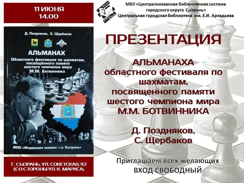 июня состоится презентация «Альманаха областного фестиваля по шахматам,