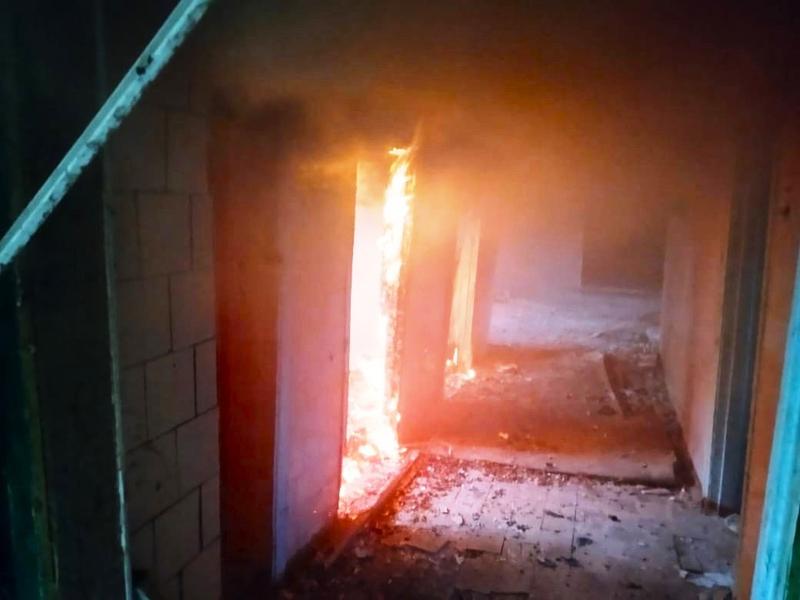 выход из подъезда, а окна, балконы, вещи были сильно испорчены огнем.