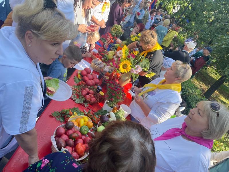 Работает тематическая площадка «Жить здорово!», на которой рассказывается о пользе томатов, а также все желающие могут принять участие в соревнованиях по гиревому спорту.