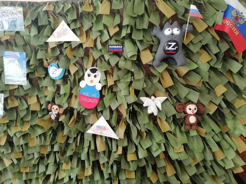 На данном фото - «Стена гордости» от группы волонтеров Натальи Долговой. Горожане могут прикрепить на маскировочную сеть все то, что ассоциируется у сызранцев с Россией - первые экспонаты уже украшают «стену».